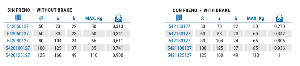 | Tamaño | 4 del 542050127, 4 del 542060127, 4 del 542080127, 4 del 5420100127, 4 del 5420125127, 4 del 542150127, 4 del 542160127, 4 del 542180127, 4 del 5421100127, 4 del 5421125127 |